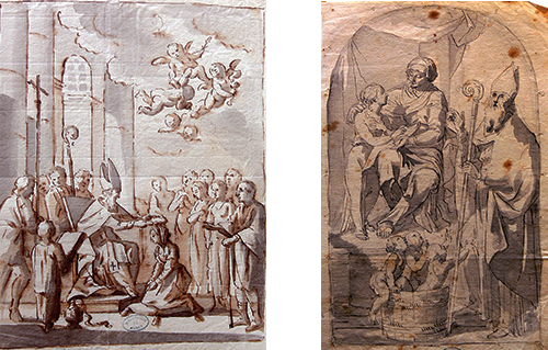 – Attribués à Provençal, Scène religieuse, (19×15 cm) / La Vierge, Sainte Anne et les trois enfants (23×15 cm) encre et lavis © B. municipale, Nancy – clichés jc Taillandier