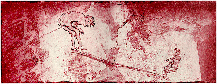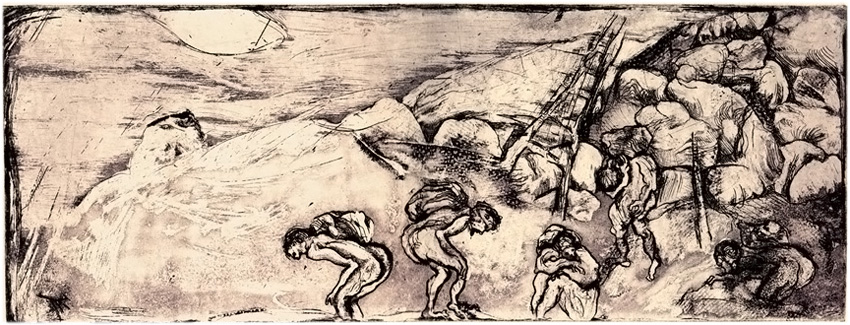 Jean-Charles Taillandier : D’après Dante ( Enfer Chant XXXII), eau-forte sur cuivre, 12,5 x 33 cm, 1999.
