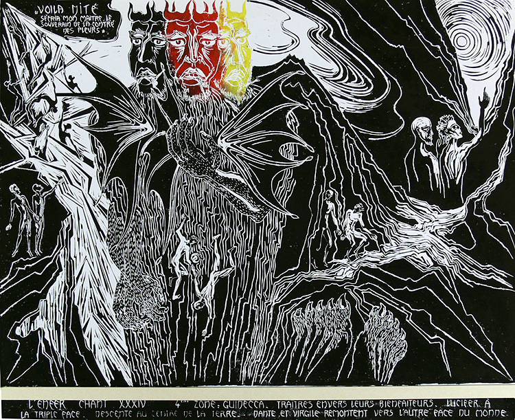 Nicolas Chenard : D’après Dante ( Enfer Chant XXXIV), linogravure, 33 x 50 cm, 2013.
