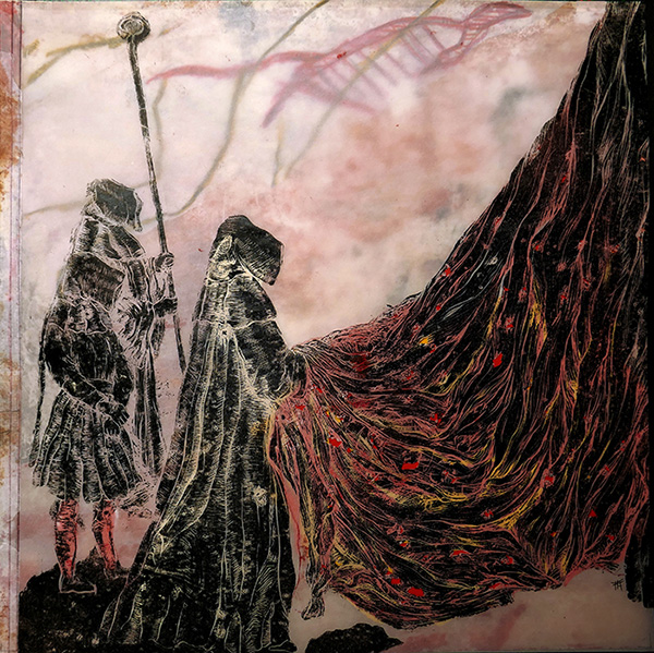 L’exposition en septembre dernier sur les cimaises de la galerie du Bailli d’Épinal (*) présentait les quatorze gravures sur vinyl grand format composant la suite Les bas rouges dont j’évoquais la conception dans le précédent article Les bas rouges, gravures et dessins. J’y soulignais la lente élaboration d’une gravure en relief sur vinyl dont le tirage sur papier de l’épreuve définitive n’est en fait que la phase finale. Son antériorité est la partie cachée de l’iceberg et la plus longue.