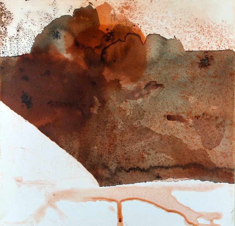 L’exposition Focus Monts et Eaux (Shanshui) de Xavier Thomen présentait à la Galerie Artothèque 379 de Nancy différentes œuvres de cette série : des formats carrés sur papier 20×20 cm intégrés dans la collection des Carré 379, des acryliques sur toile avec collage de format 30×30 à 50×50 cm. Sans oublier plusieurs sculptures en acier et bois, suspendues en l’air en pendule, loin du sol, inattaquables donc et à l’abri de Gonggong, le génie des eaux malfaisant de la mythologie chinoise. On ne sait jamais…