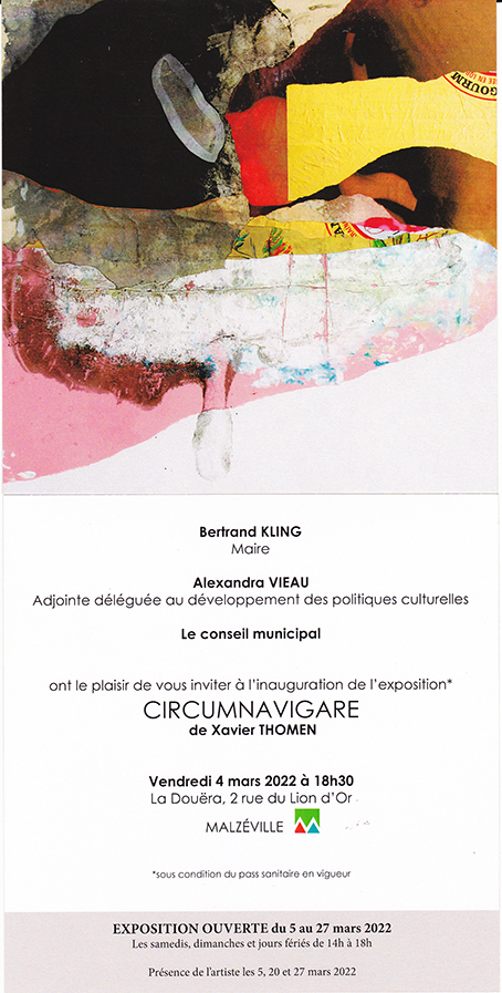 On imagine d’immenses cieux délavés sur des étendues de terre ocre, de vastes horizons de prairies, des réseaux de rivières dans des vallées profondes, et des cimes enneigées. Et puis des bandes de couleur qui s’interfèrent dans ce paysage, qui flottent comme portées par le vent. Et on se dit que les peintures/collages de Xavier Thomen ont à révéler beaucoup plus que ce qu’elles dévoilent à notre œil intrigué. Que nous sommes dans le territoire vrai de la peinture, quand la peinture s’aventure au-delà d’un simple compte-rendu visuel des paysages Elle est la symbiose d’un réel et d’un imaginaire, révélatrice de la complexité d’une histoire que le peintre entretient avec le monde et son histoire intime.