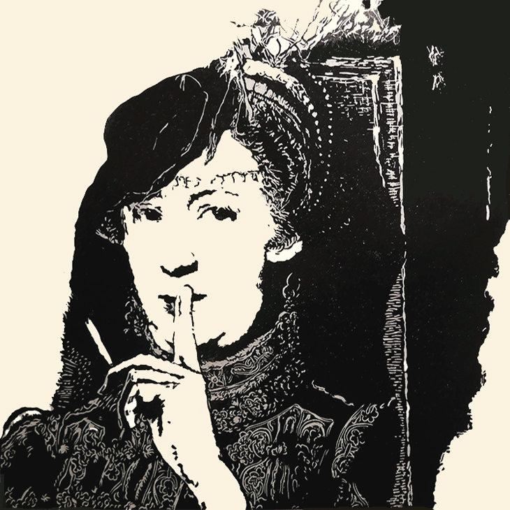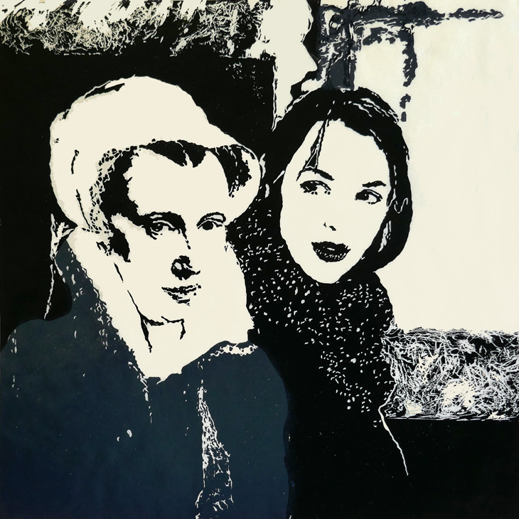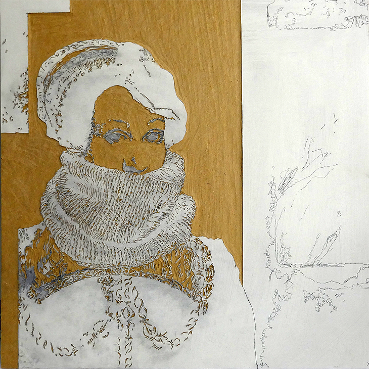 Temps passé, temps présent… la thématique essentielle est le temps, mais le personnage unique est la femme. Soit représentée seule, soit accompagnée. L’amorce de la démarche plastique a donc été le choix délibéré de portraits de femmes appartenant ou proches de la période Renaissance, représentées selon les codes de leur temps, mais transposées dans notre vingt-et-unième siècle par le miracle d’un détail de costume, d’objet, de gestuelle ou de décor incongru de leur époque. Ou rencontre fortuite de deux personnages féminins appartenant à des époques et univers mentaux étrangers l’un à l’autre.