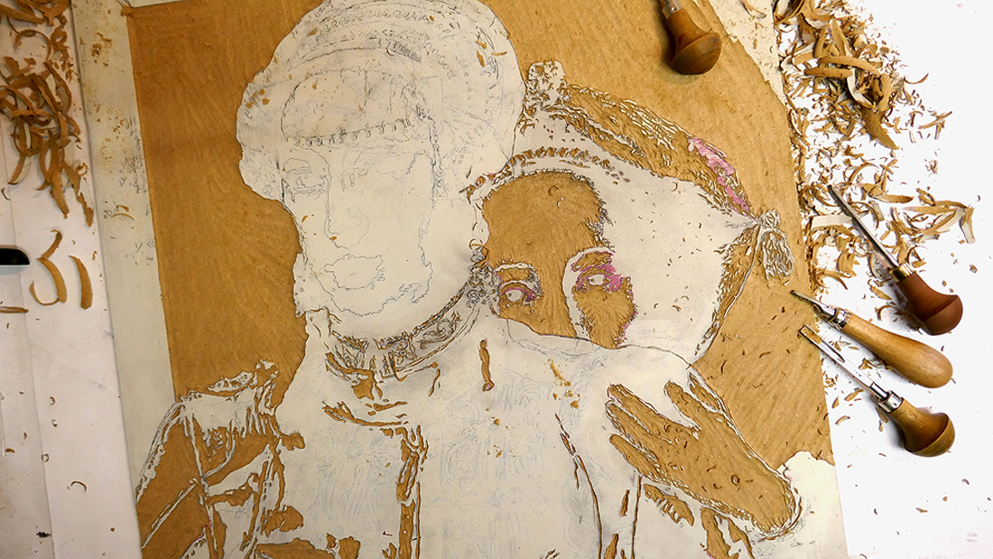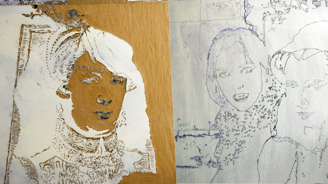 C’est en tout cas mon ambition initiale que je souhaite poursuivre, non plus avec les ressources de l’estampe numérique que j’avais privilégiée pour l’expérience précédente de “Fake news en dentelles“, mais avec le recours de la xylographie dont j’apprécie le primitivisme du trait limité au recours épuré de trois couleurs que sont le blanc, le noir et le gris.