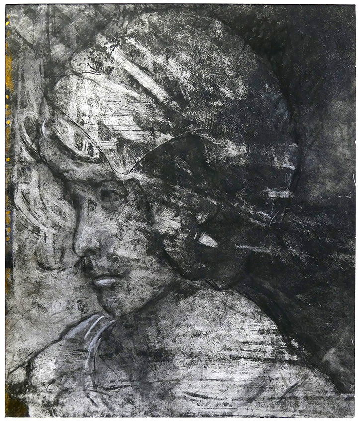 crayon, encre et fusain sur état gravé, format 24 x 32 cm.
