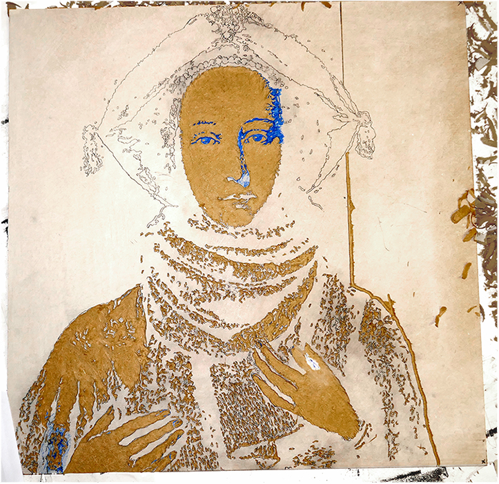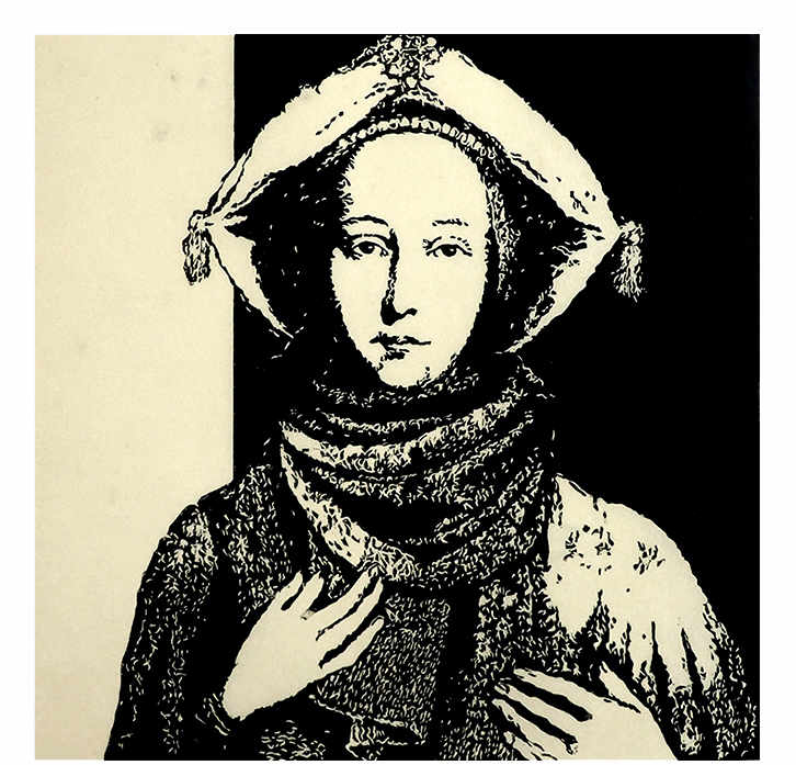 Nous la retrouvons plus âgée dans un second portrait daté du second quart du XVIIe siècle, également œuvre d’un peintre anonyme. Enchâssé dans un ovale, son buste de jeune femme émerge d’une curieuse architecture géométrique, le corps corseté de lignes obliques qui convergent vers ce point noir et lourd au centre de la poitrine. Une expression de profonde mélancolie habite ce second portrait non daté. Seul repère, cette mention en bas du cadre qui la désigne « Madame Nicole de Lorraine, duchesse de Lorraine et du Barrois » pendant un très court règne de seize mois, point d’orgue d’une vie très chaotique.