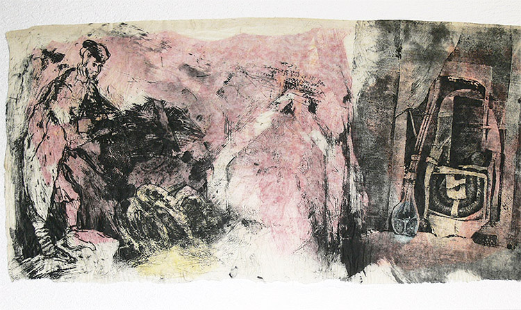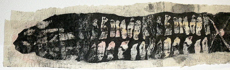 gravures et collages sur papier japon (détails fragments 6 et 4, longueur 60 et 50 cm).